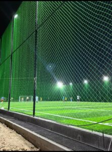 Lapangan mini soccer kami menggunakan rumput sintetis berkualitas tinggi yang dirancang untuk memberikan kenyamanan, keamanan, dan alur permainan yang lebih dinamis.